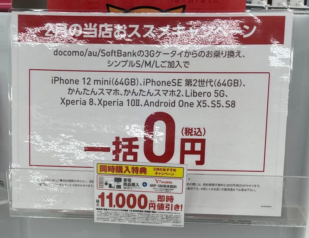✔ワイモバイルも同様に安く販売している機種が多い