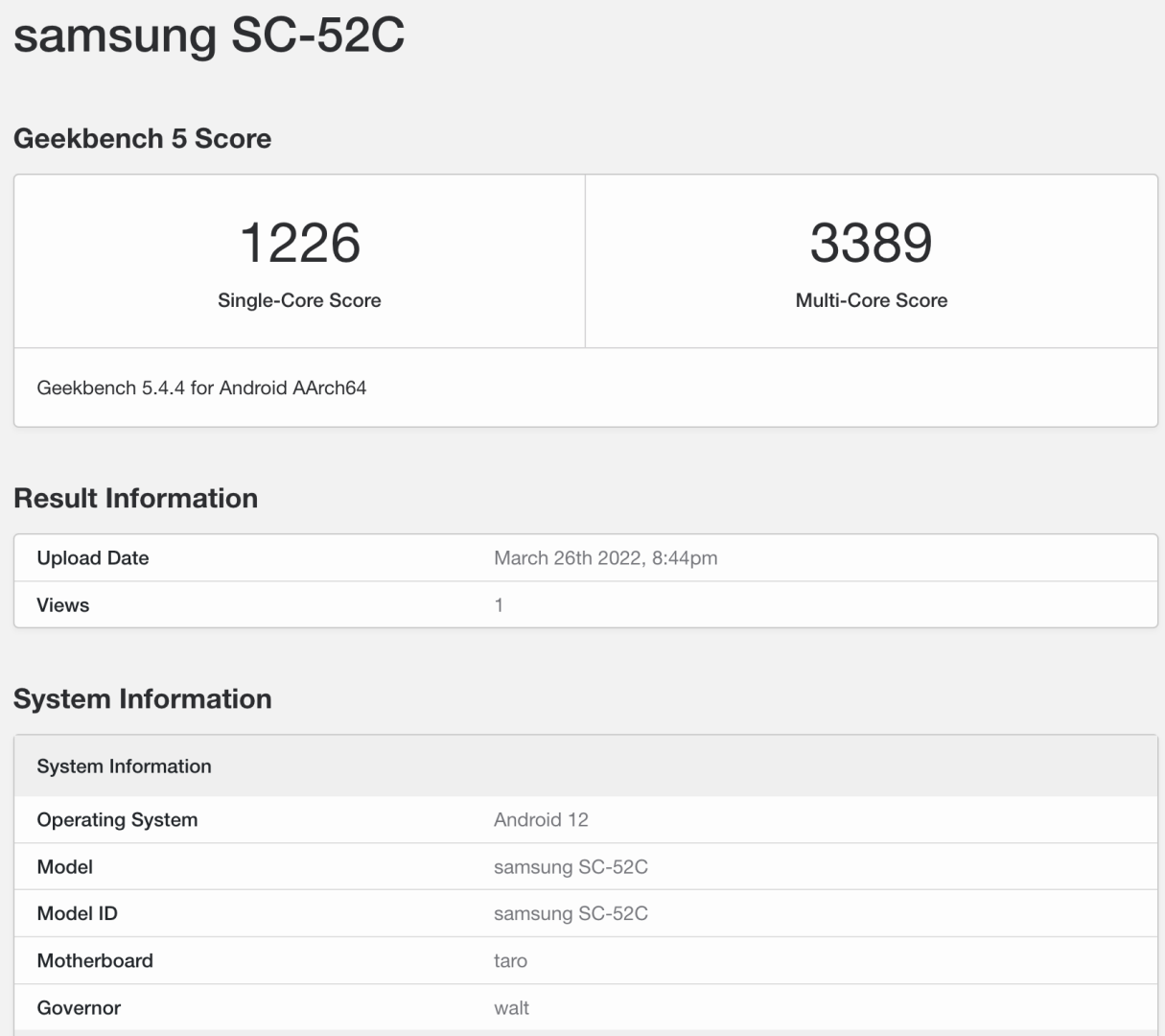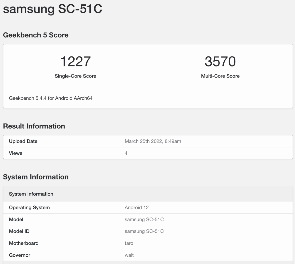 ドコモから発売されるGALAXY S22がgeekbench上に現れました。