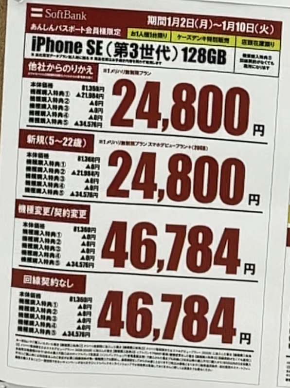 iPhoneSE3の128GBは24800円となっています。ベースは今はこの価格が適正価格だと思います。