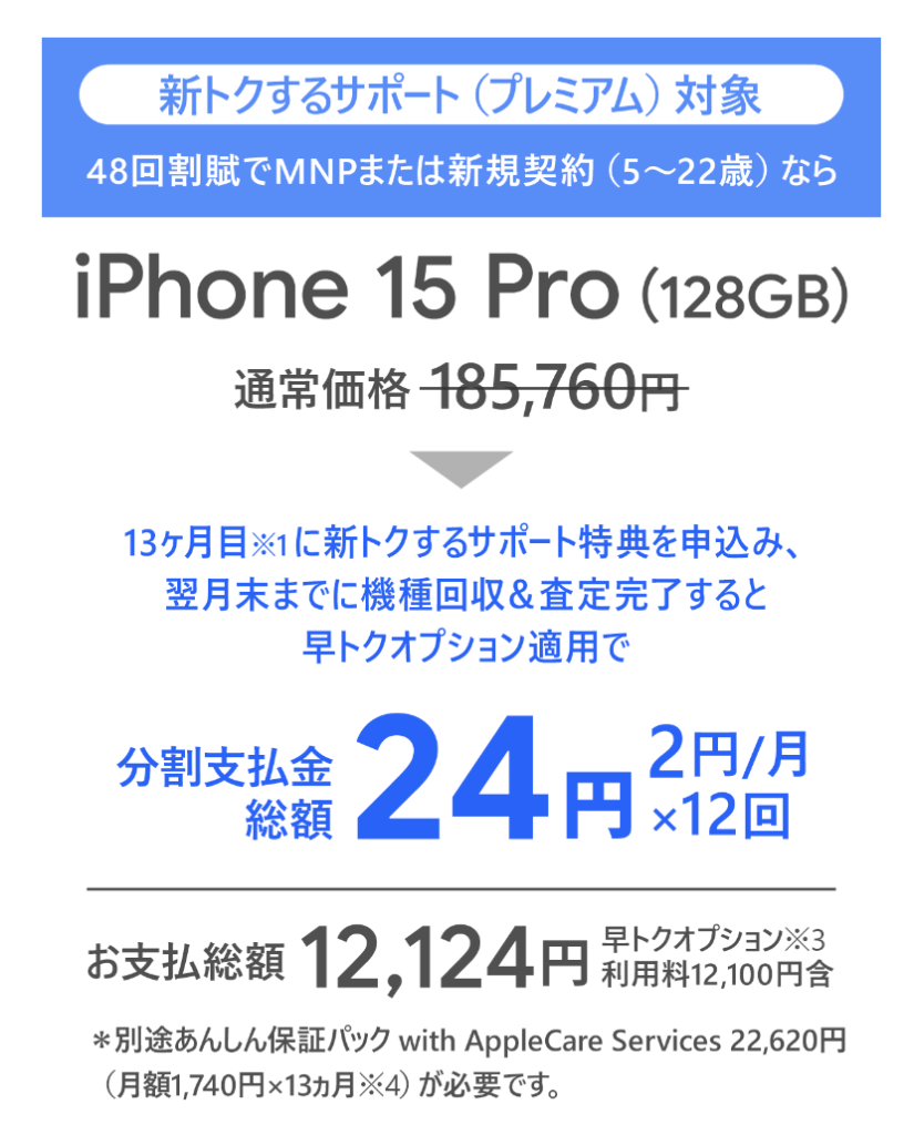 iPhone15Proが実質価格での販売ということで、非常に安価に購入することが可能となりました。
