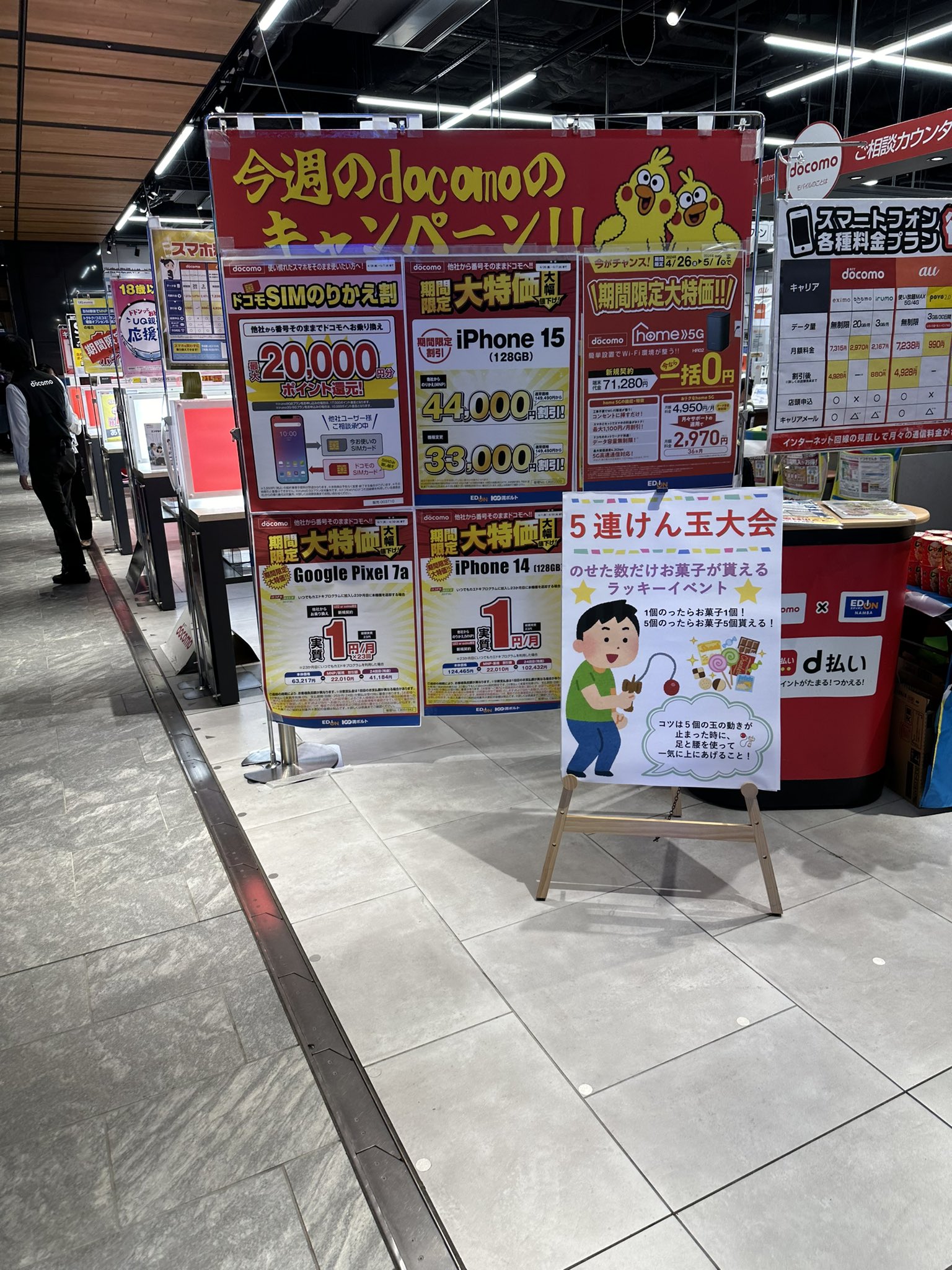 エディオン難波の施策です✨ ドコモが入り口にいました‼️ たいていソフトバンクなのに笑笑 #MNP