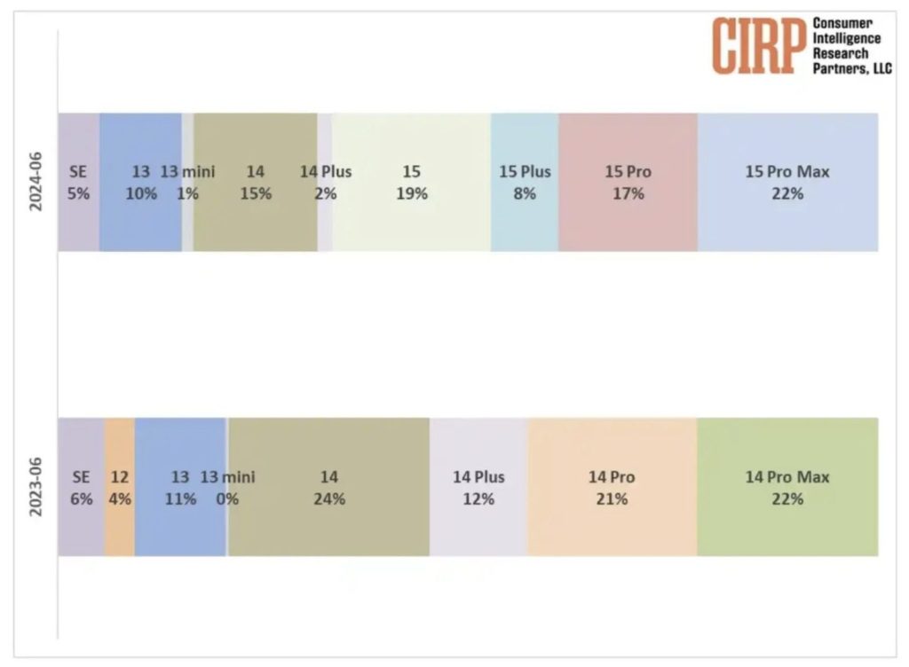 こちらの表を見てもらいたいのですが、iPhone15は全体の66%しか売れていません。